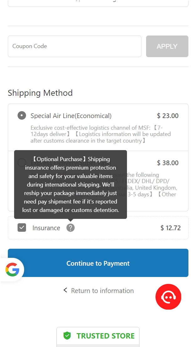 That's why we offer a rare service in the industry - 【shipment insurance】, which you will see during the checkout process.